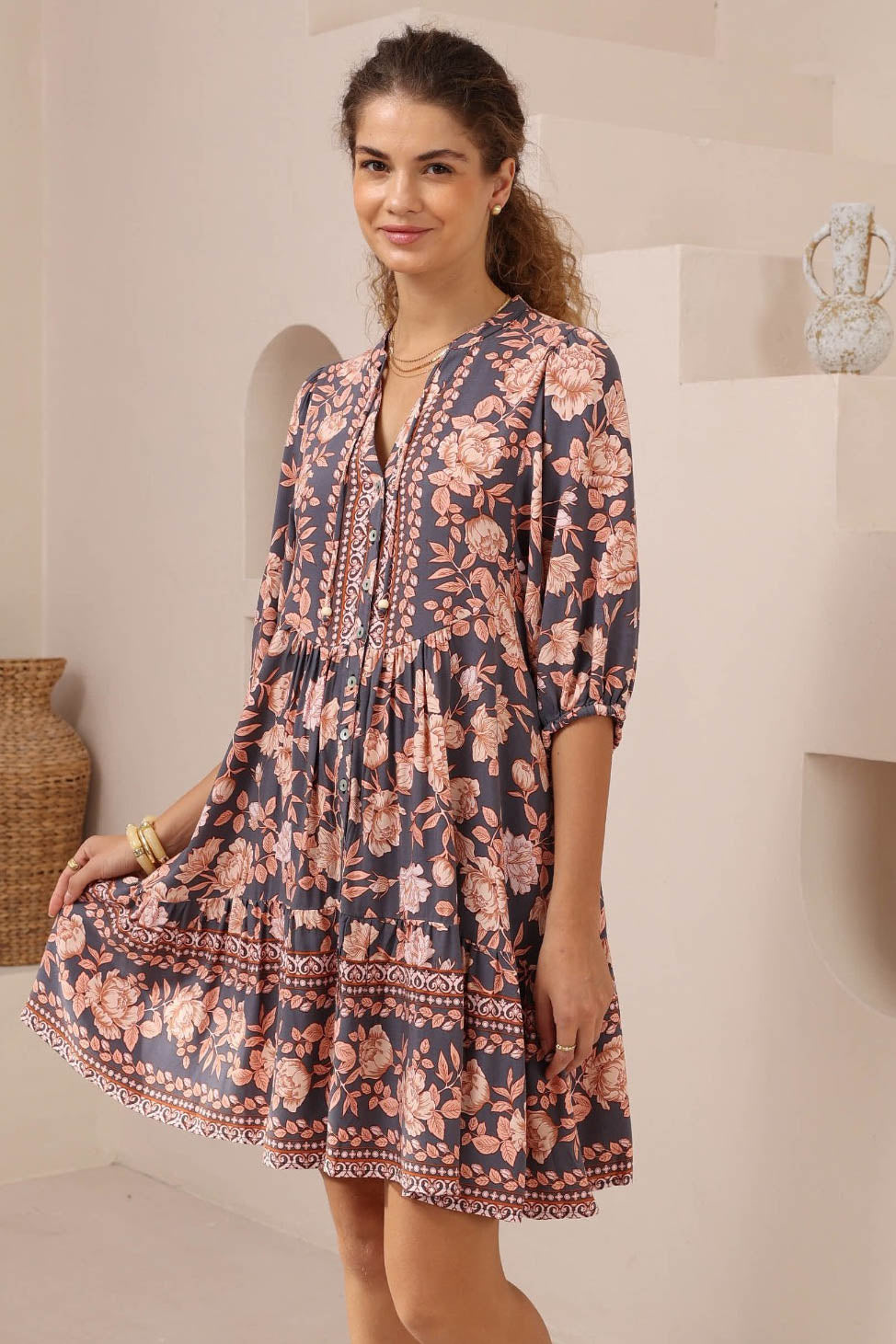 Our Abidemi dress is breezy and comfortable, definitely the perfect dress for you! The lightweight fabric is perfect to keep you feeling cool, and the trendy bohemian print will have you looking stylish for any event.