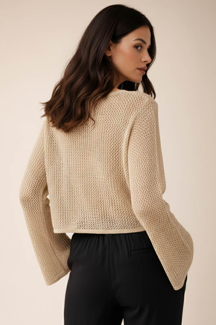 Elevate your everyday look with our Metallic Crop Knit ! Easy and effortlessly chic. Its shimmering finish adds just the right touch of polish, making it perfect from day to night.