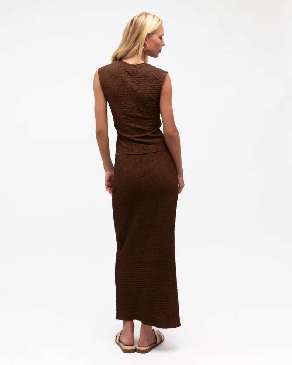 Bubble V Neck Top Chocolate