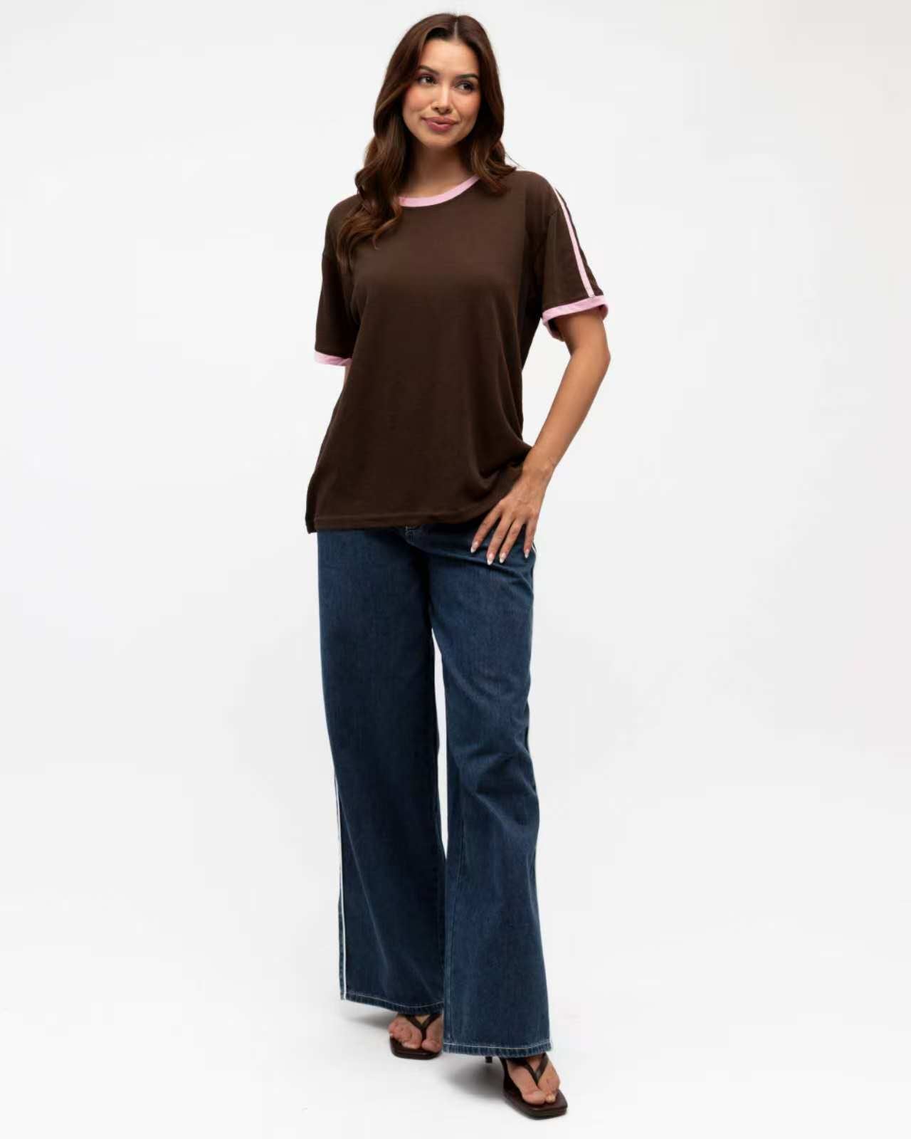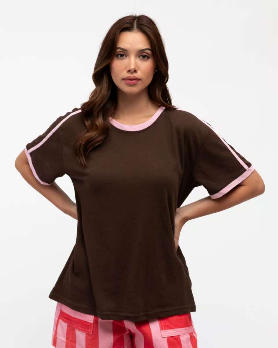 Effy Contrast Tee in Choc Pink by Paper Heart