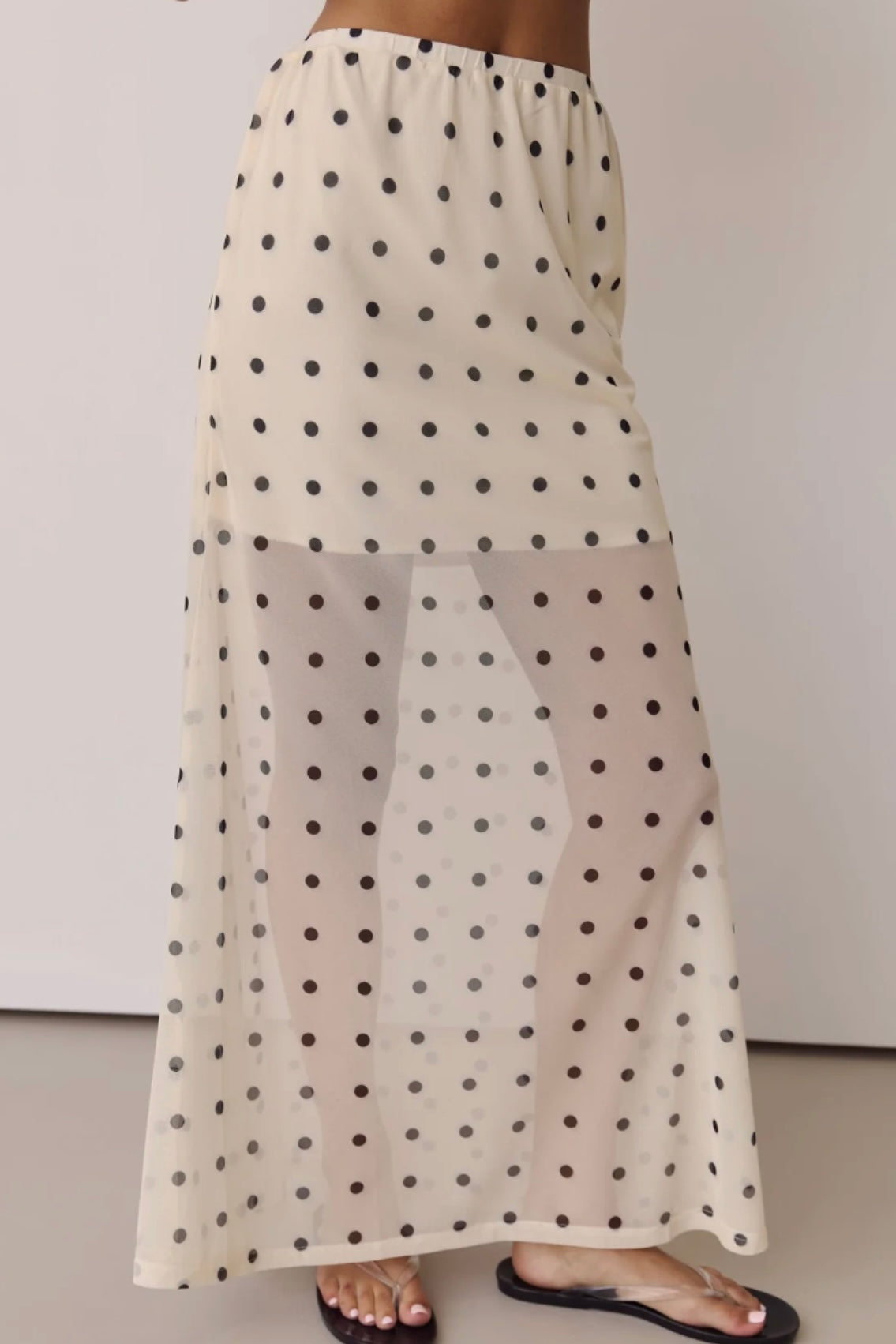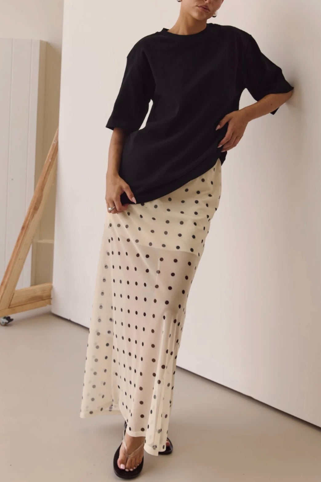 Maxi skirt in cream and black polka dot
